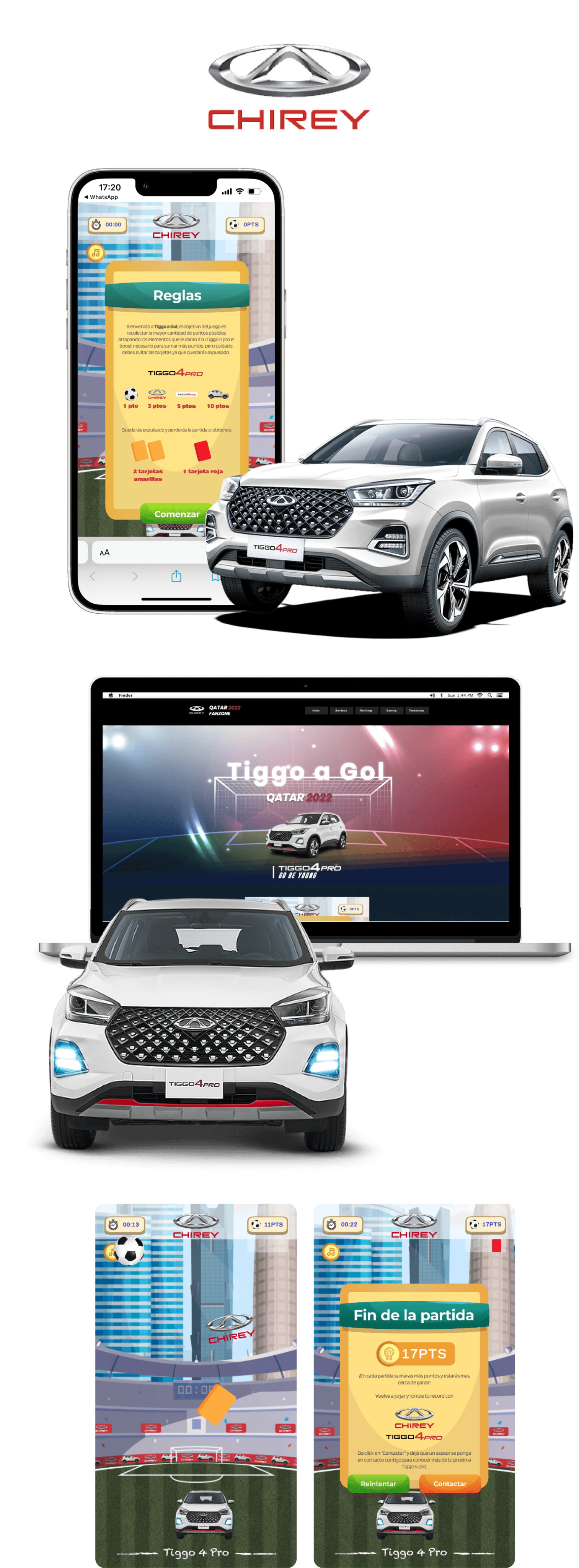 Juego tipo casual multiplataforma que se desarrollo para atraer clientes a través de una dinámica en temporada del mundial de futbol año 2022. El usuario generaba puntos en la partida y al finalizar podía dejar sus datos para más información de los modelos y la marca.